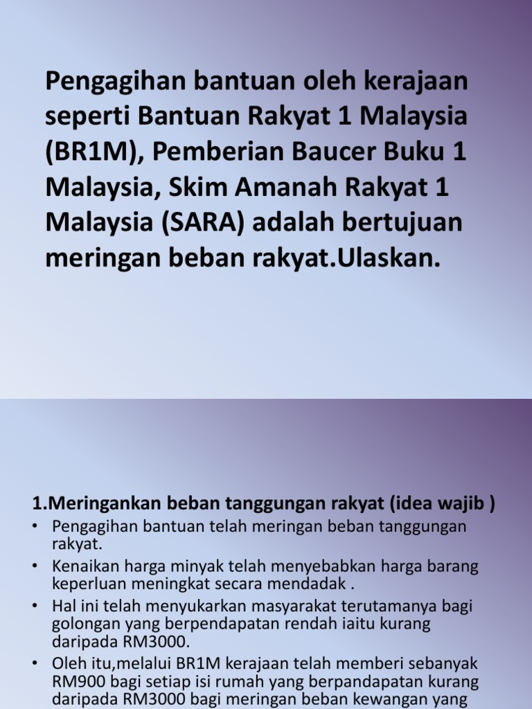 Pengagihan Bantuan Oleh Kerajaan Seperti Bantuan Rakyat 1 Pdf